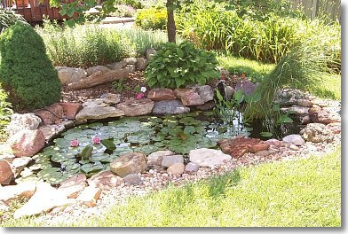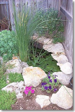 goldfish, a couple of frogs, water lillies, pickerel, cat tail and more. A